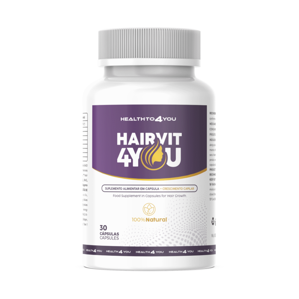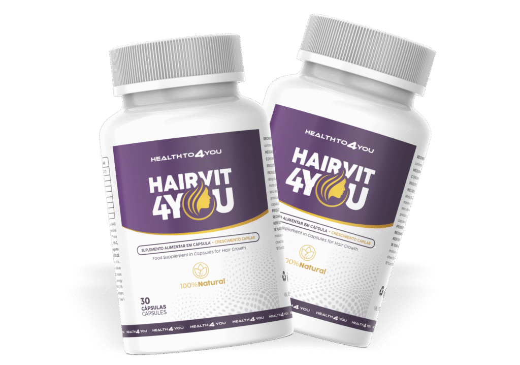 O Hairvit 4You é um suplemento alimentar completo para o fortalecimento dos cabelos e unhas. Sua composição contém Biotina, Vitamina E, Vitamina C, Complexo B, Silício Orgânico, Colágeno Hidrolisado, Ômega 3 e Equisetum Arvense (Cavalinha).